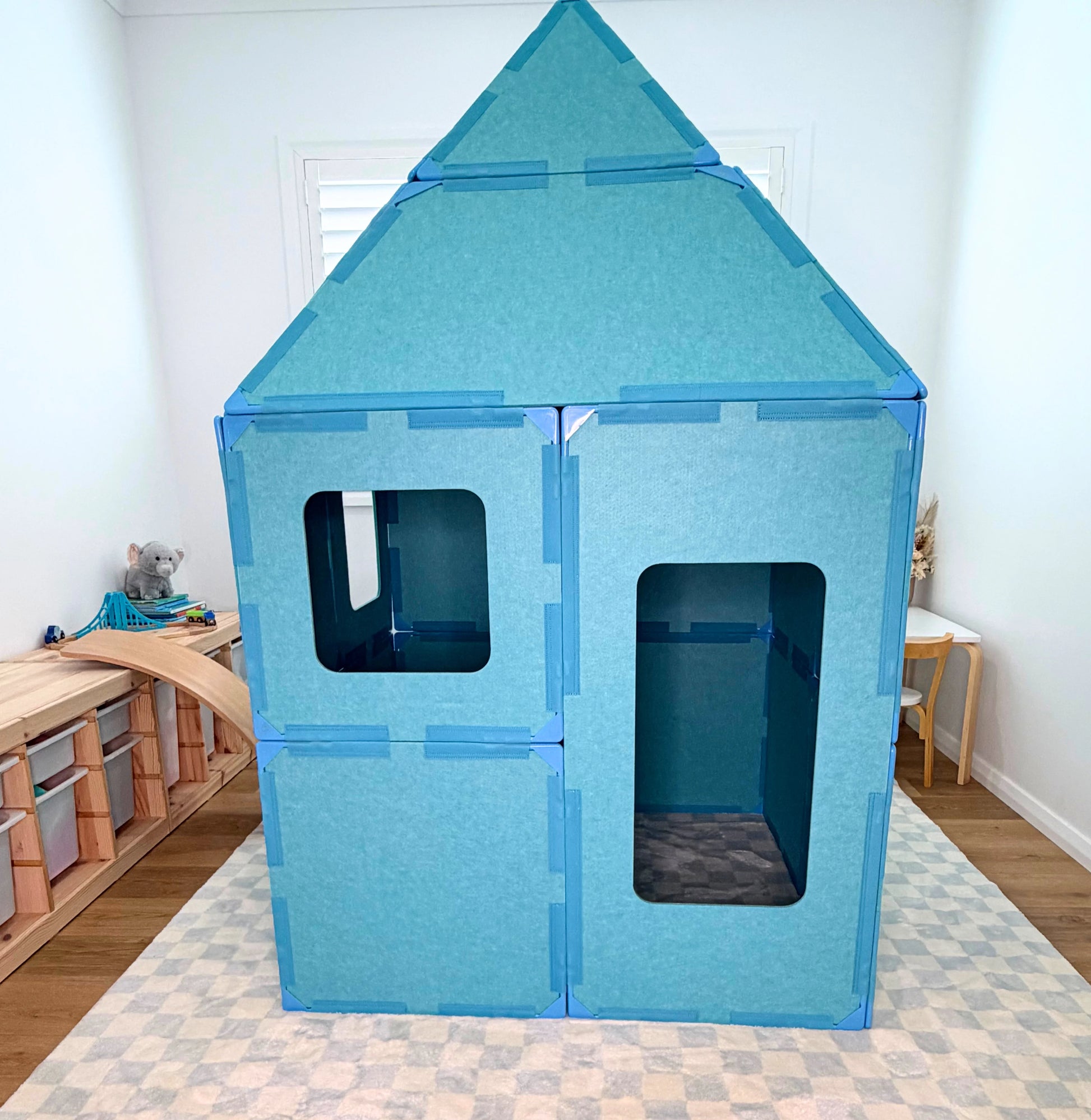 From towering forts and tunnels to castles and cubby houses, the only limit is your child’s imagination. Made with durable, high-quality recycled felt and strong concealed magnets, these tiles snap together, making big builds safe and easy to manoeuvre for children.