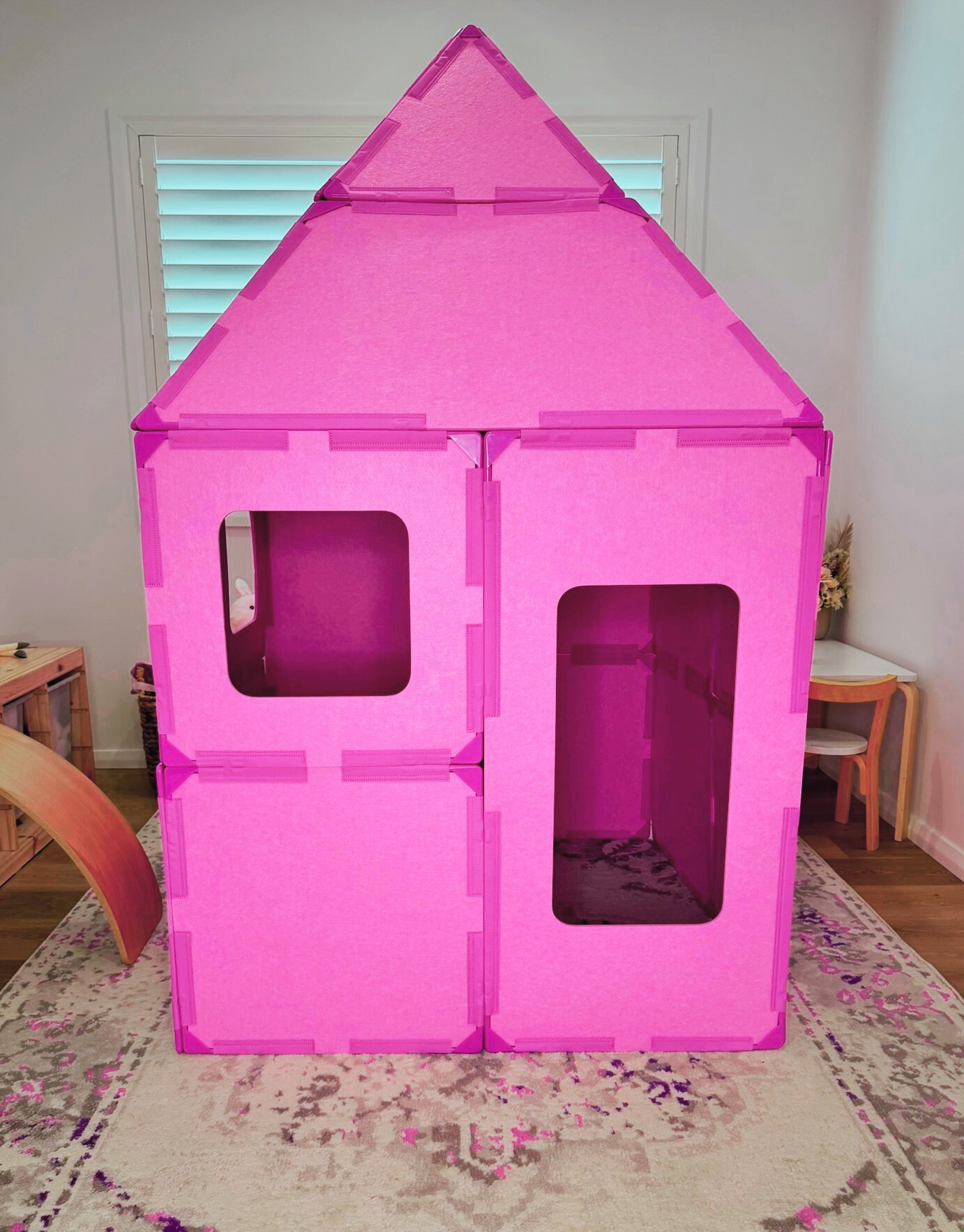 From towering forts and tunnels to castles and cubby houses, the only limit is your child’s imagination. Made with durable, high-quality recycled felt and strong concealed magnets, these tiles snap together, making big builds safe and easy to manoeuvre for children.